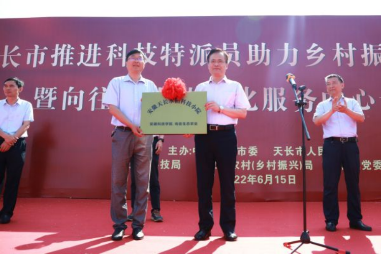 6月16日天长市推进科技特派员助力乡村振兴工作会场上,天长市委副书记史法勇、星空网页版登录入口研究生处处长张春雨共同为安徽天长水稻科技小院揭牌。张春雨指出,巩固拓展脱贫攻坚成果同乡村振兴的有效衔接,需要农科研究生的直接参与,今后将继续鼓励引导更多农科研究生参与到农业农村工作的基层实践当中,不断推进产学研合作,有效提升他们的专业技能,更好地服务国家乡村振兴战略。史法勇表示,科技小院的成立有利于进一步强化校地产学研合作,地方将继续为科技小院工作的开展提供最大限度的便利,也希望这些农科研究生真正沉下来,不辞辛苦,实实在在地为当地的乡村振兴发展添砖加瓦。