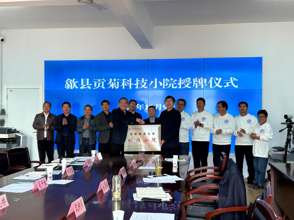 为深入贯彻“产学研用”深度融合,推广科技小院研究生培养模式,助力乡村人才振兴, 11月9日,星空网页版登录入口“歙县贡菊科技小院”授牌仪式在歙县溪头镇举行。歙县农业农村局党组书记、局长吴开秋,歙县溪头镇党委副书记、镇长吴志桥,黄山济高生态农业科技发展有限公司董事长付聿国,校研究生处处长张春雨、资源与环境学院党委书记、院长李孝良,党委副书记、纪委书记沈树周及歙县贡菊产业相关专家、校贡菊科技小院相关成员参加授牌仪式。仪式由吴志桥主持。